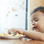 Asegúrate de que toma una ración de alimentos de origen animal (leche, productos lácteos, huevos, carne o pescado) cada día, además de legumbres (como garbanzos, lentejas o guisantes) o frutos secos, y verduras y frutas. Añade un poco de aceite o grasa a su comida para darle energía. ¿Necesitas ideas para preparar sus comidas? Aquí encontrarás muchas recetas para bebés a partir de 12 meses.