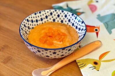 Este es un puré muy fácil de preparar y digerir. La patata aporta hidratos y un sabor que le encanta a todos los niños, además de una textura más espesa.